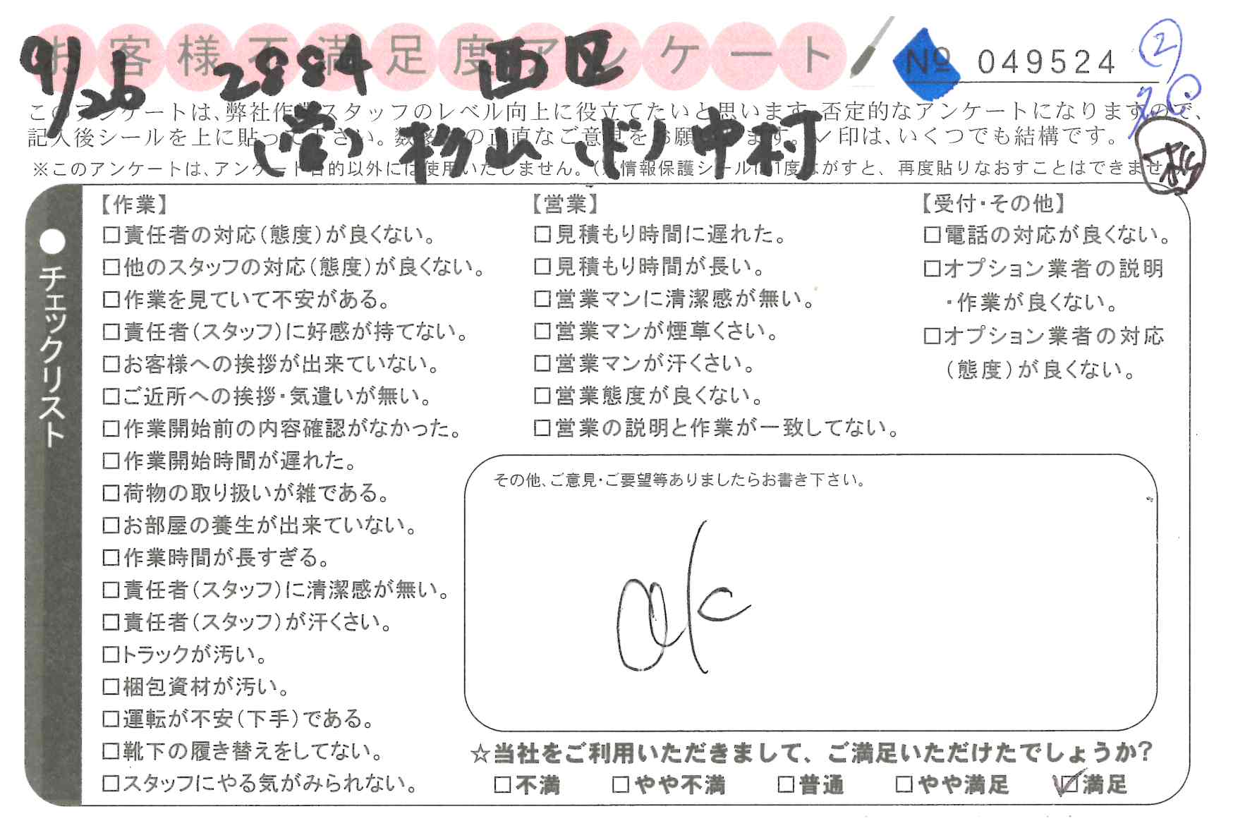 引越一番でお引越しをしていただいたお客様のうち、コメントいただいたアンケートを全て掲載しています。