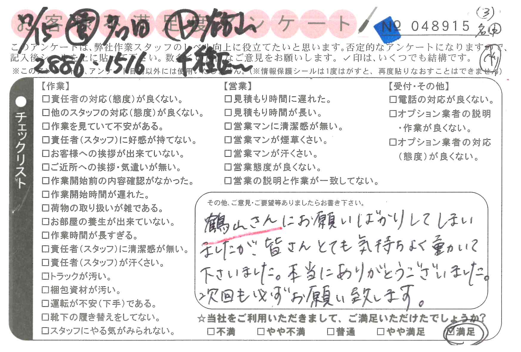 不満足度アンケートを行っている引越一番では、不評なアンケートも、好評なアンケートも全て掲載しています。