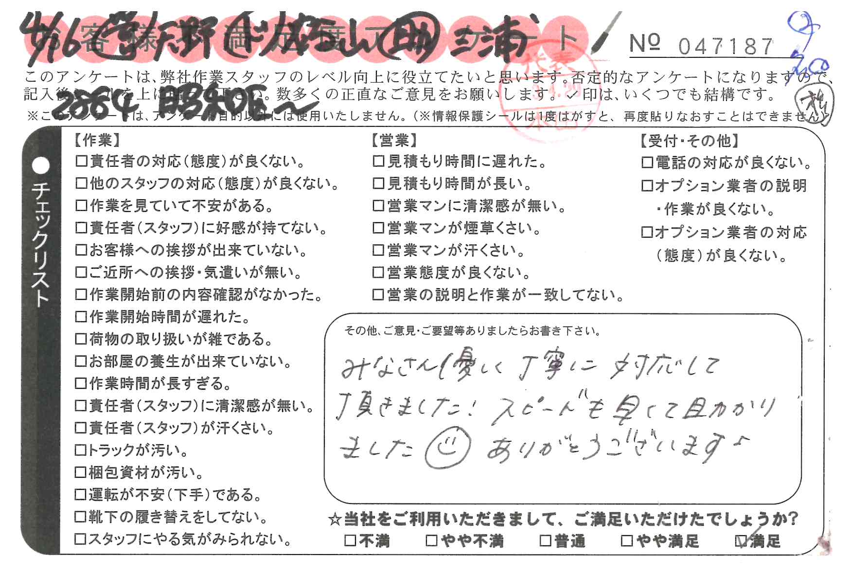 初めての引越しでしたが、安心してできました。