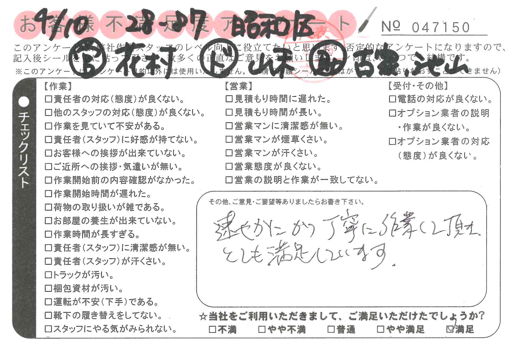4/9 引越 営業:天野 ドライバー:三浦 スタッフ:望月* 満足です。