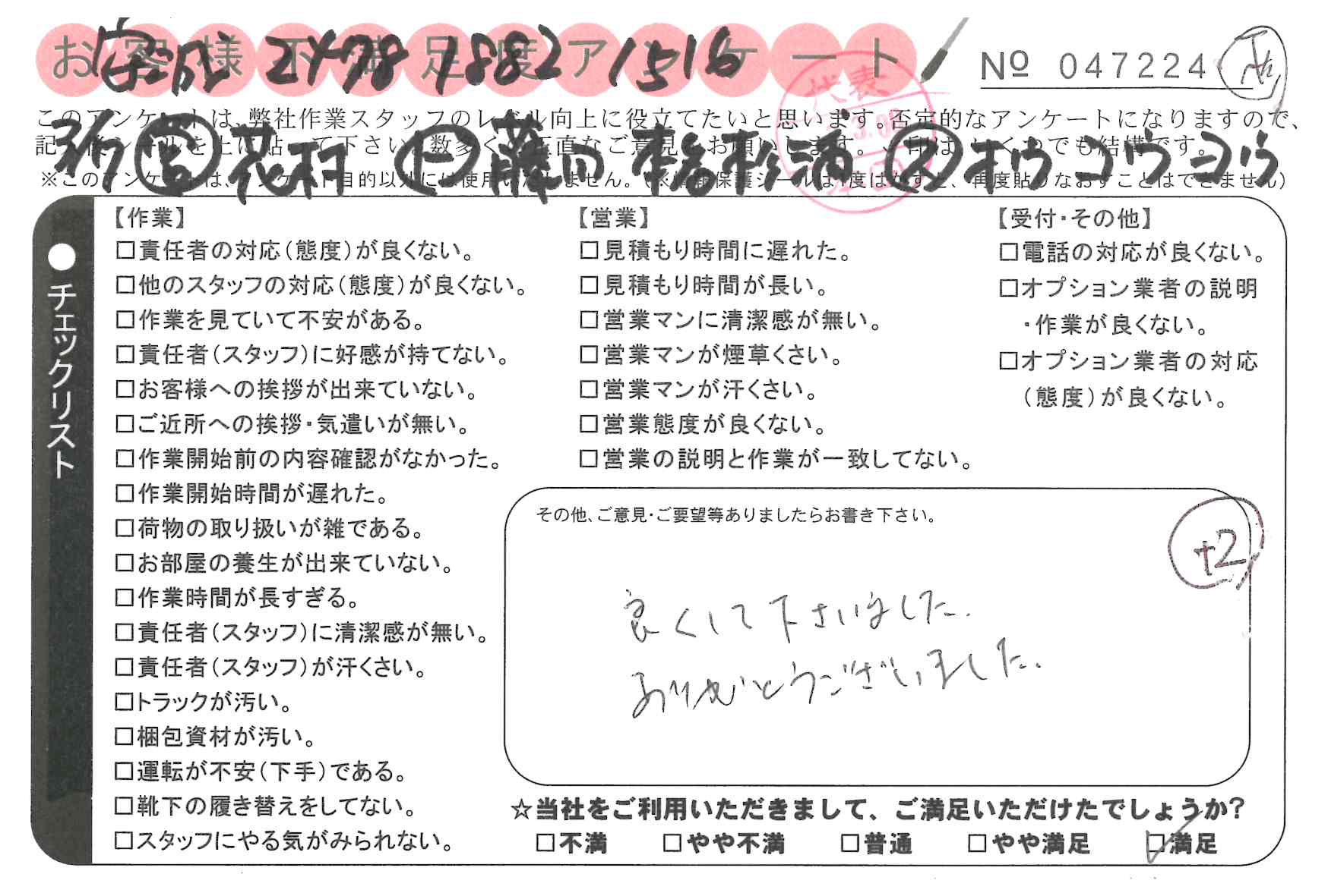 不満足度アンケートを行っている引越一番では、不評なアンケートも、好評なアンケートも全て掲載しています。