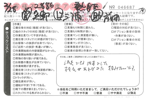 引越一番でお引越しをしていただいたお客様のうち、コメントいただいたアンケートを全て掲載しています。