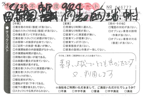 引越一番でお引越しをしていただいたお客様のうち、コメントいただいたアンケートを全て掲載しています。