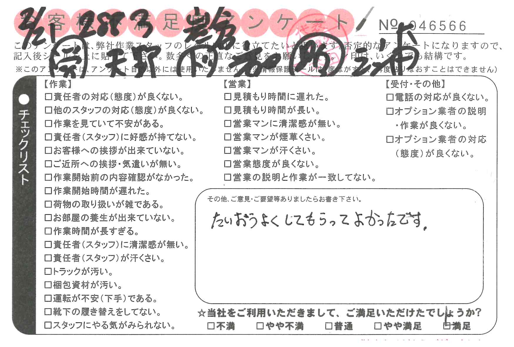 2/23 引越 営業:名田 ドライバー:本名 スタッフ:ホウ* 不満足は特にありません。