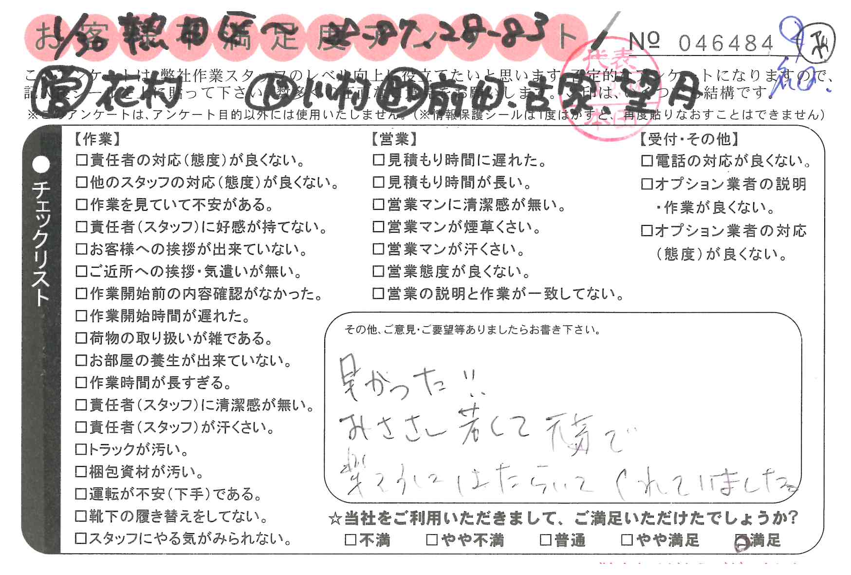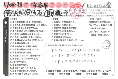 引越一番でお引越しをしていただいたお客様のうち、コメントいただいたアンケートを全て掲載しています。