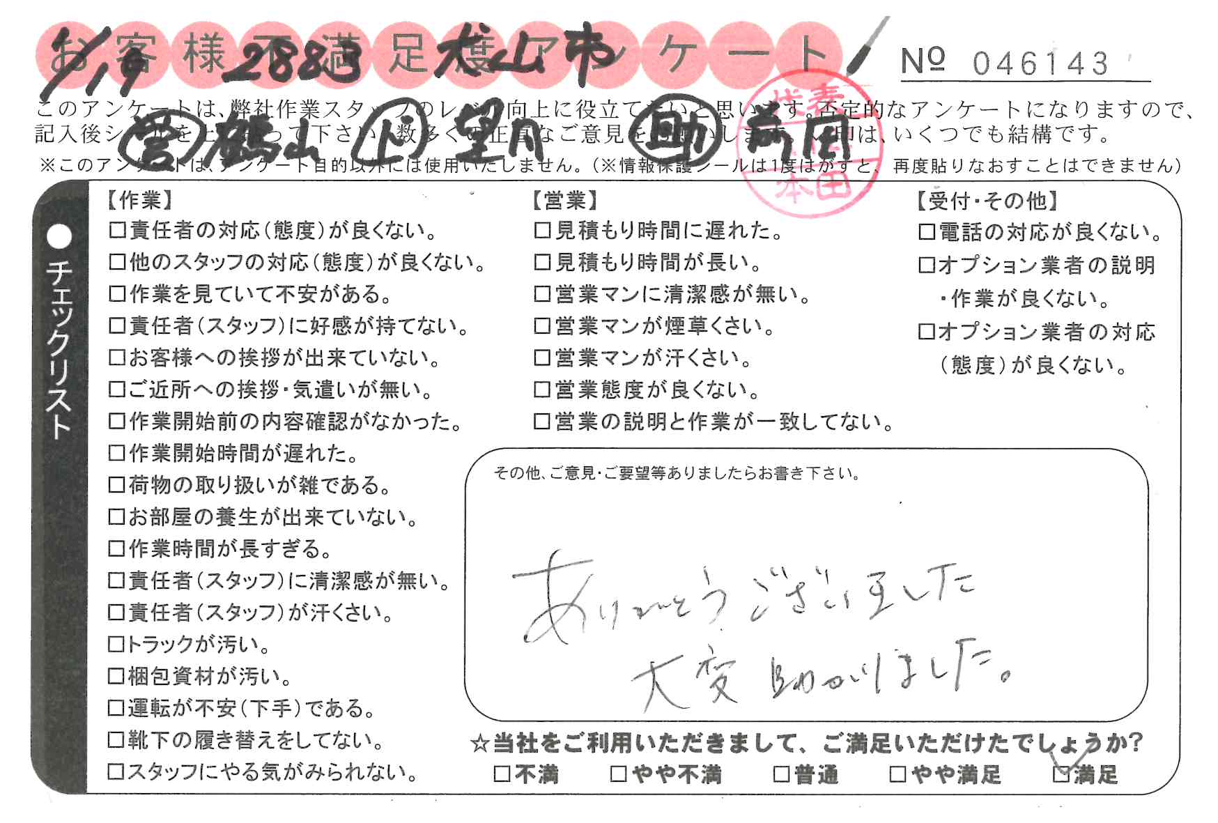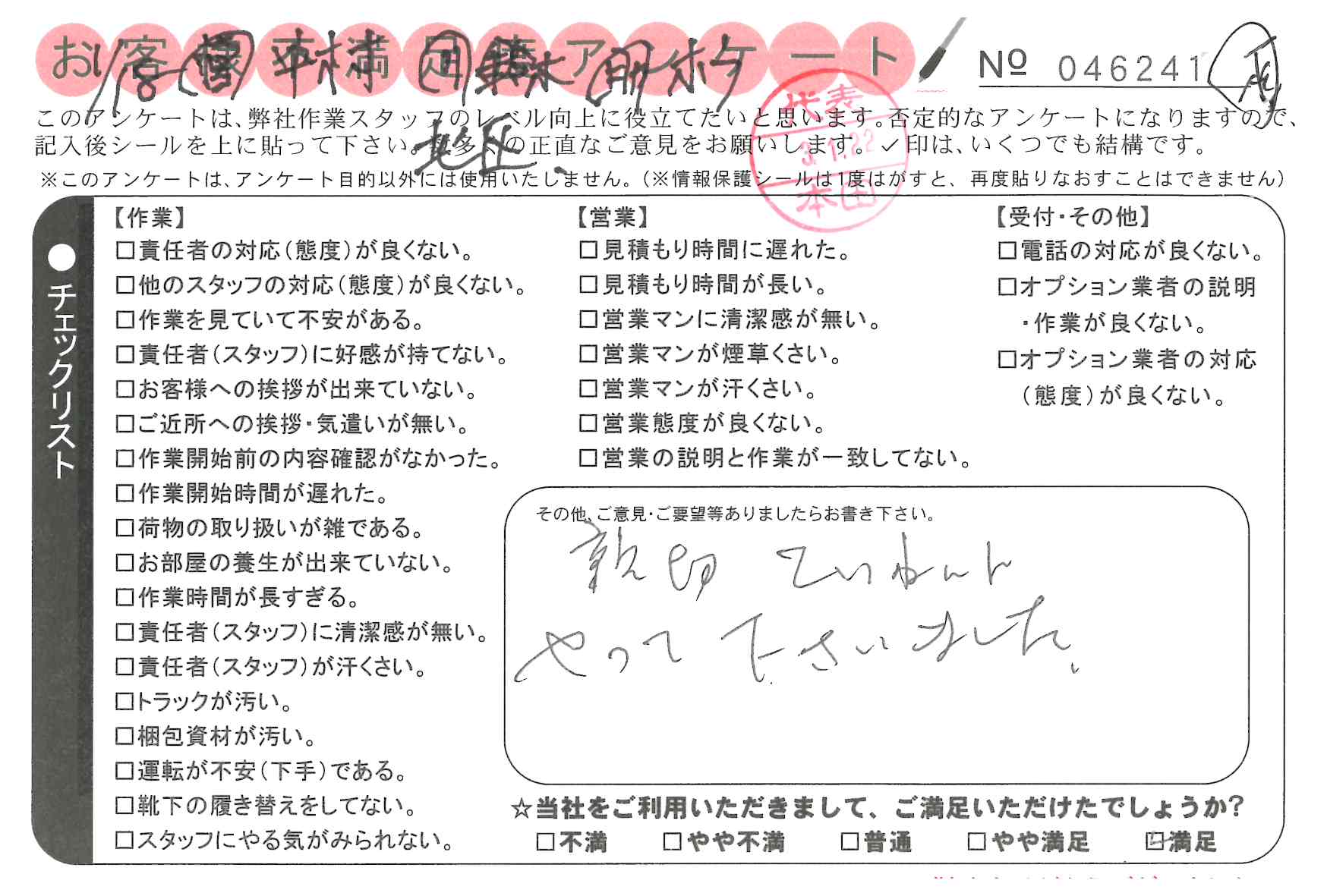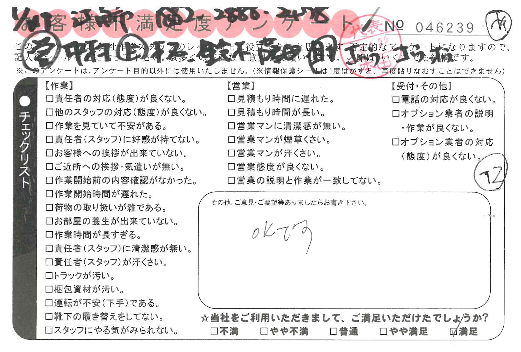 引越一番でお引越しをしていただいたお客様のうち、コメントいただいたアンケートを全て掲載しています。