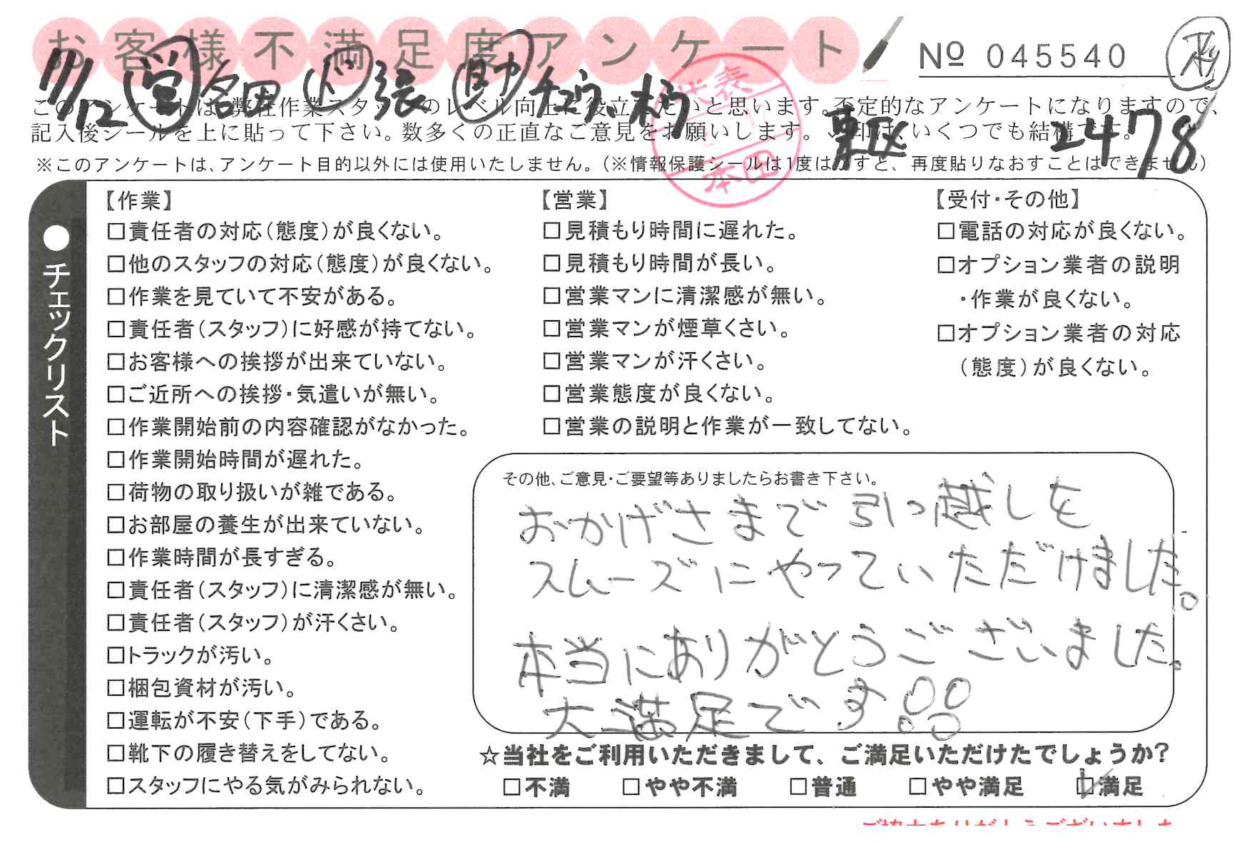 引越一番でお引越しをしていただいたお客様のうち、コメントいただいたアンケートを全て掲載しています。