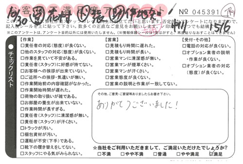 引越一番でお引越しをしていただいたお客様のうち、コメントいただいたアンケートを全て掲載しています。