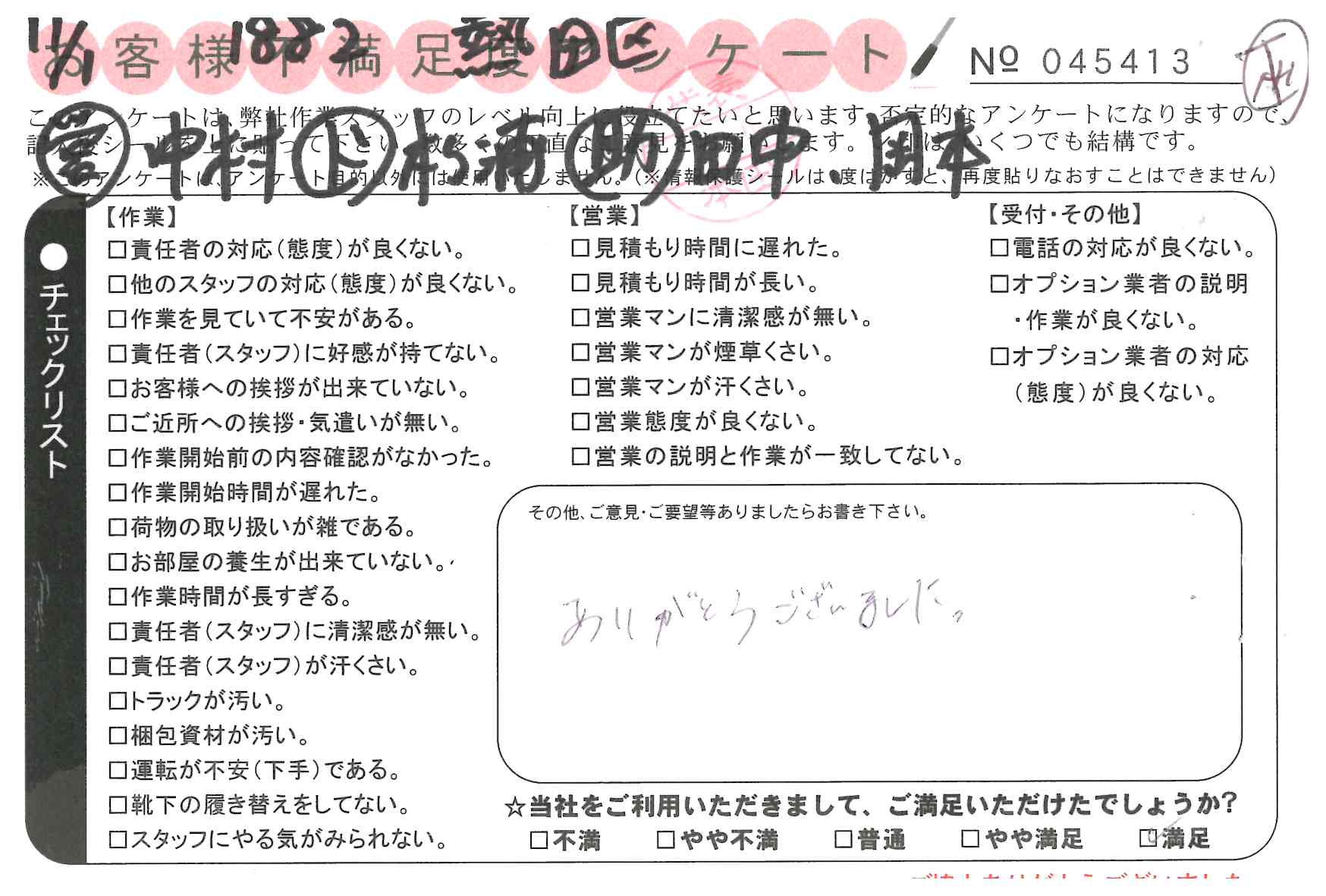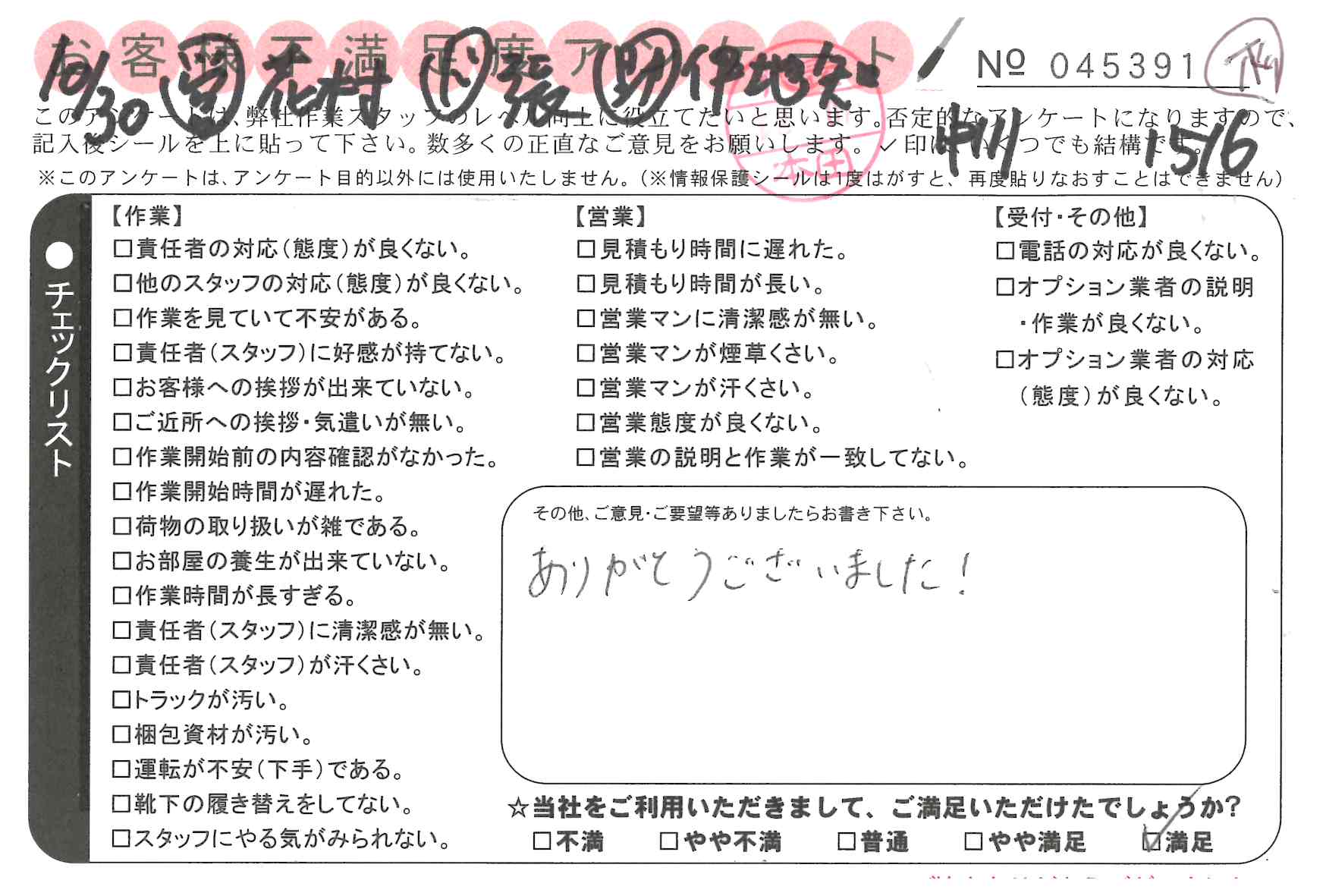 不満足度アンケートを行っている引越一番では、不評なアンケートも、好評なアンケートも全て掲載しています。
