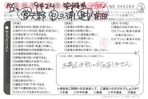 引越一番でお引越しをしていただいたお客様のうち、コメントいただいたアンケートを全て掲載しています。
