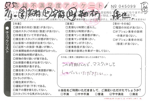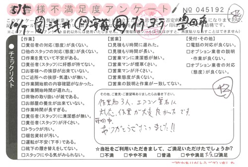 引越一番でお引越しをしていただいたお客様のうち、コメントいただいたアンケートを全て掲載しています。