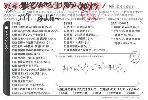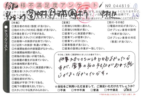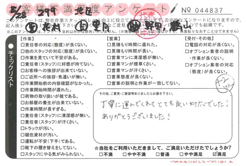 引越一番でお引越しをしていただいたお客様のうち、コメントいただいたアンケートを全て掲載しています。