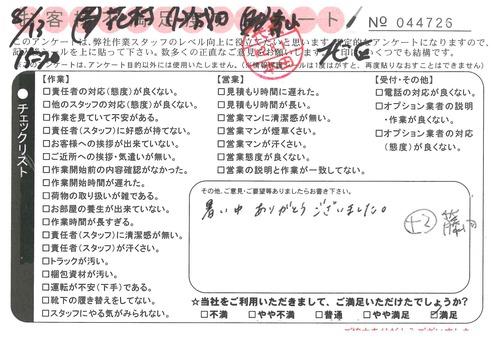 引越一番でお引越しをしていただいたお客様のうち、コメントいただいたアンケートを全て掲載しています。