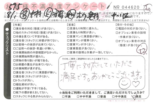 引越一番でお引越しをしていただいたお客様のうち、コメントいただいたアンケートを全て掲載しています。