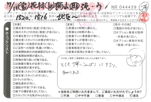 引越一番でお引越しをしていただいたお客様のうち、コメントいただいたアンケートを全て掲載しています。