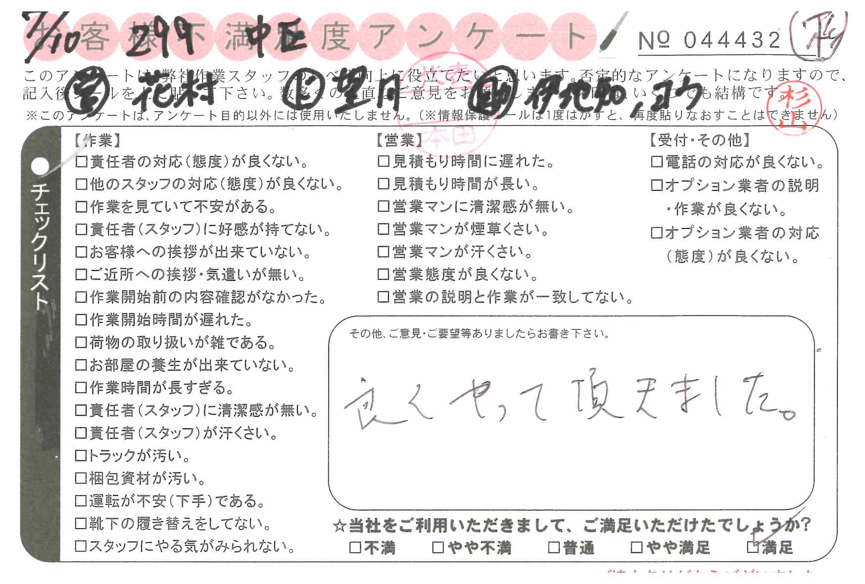 7/10 引越 営業:花村 ドライバー:望月 スタッフ:伊地知・楊* 良くやって頂きました。