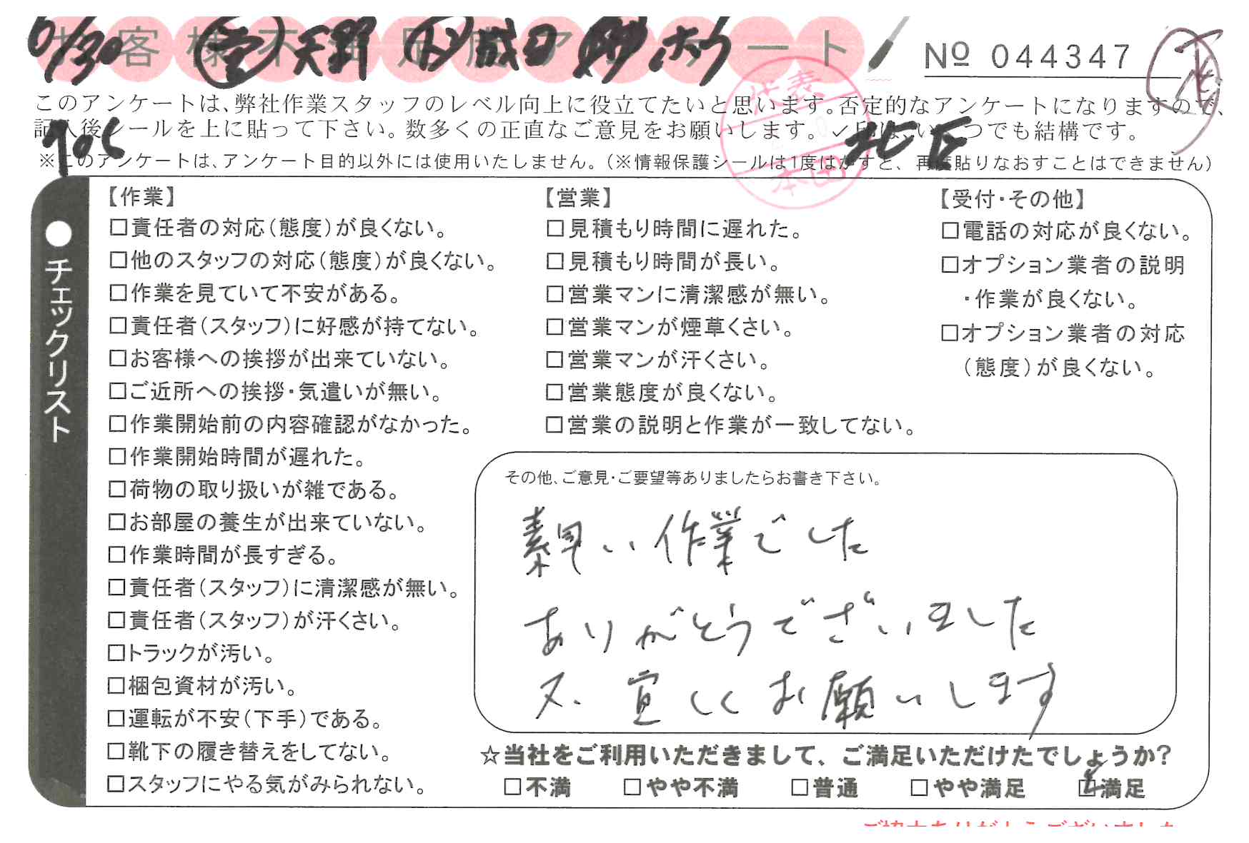 引越一番でお引越しをしていただいたお客様のうち、コメントいただいたアンケートを全て掲載しています。