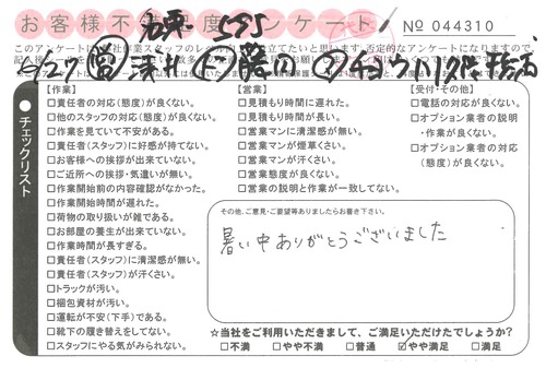 引越一番でお引越しをしていただいたお客様のうち、コメントいただいたアンケートを全て掲載しています。