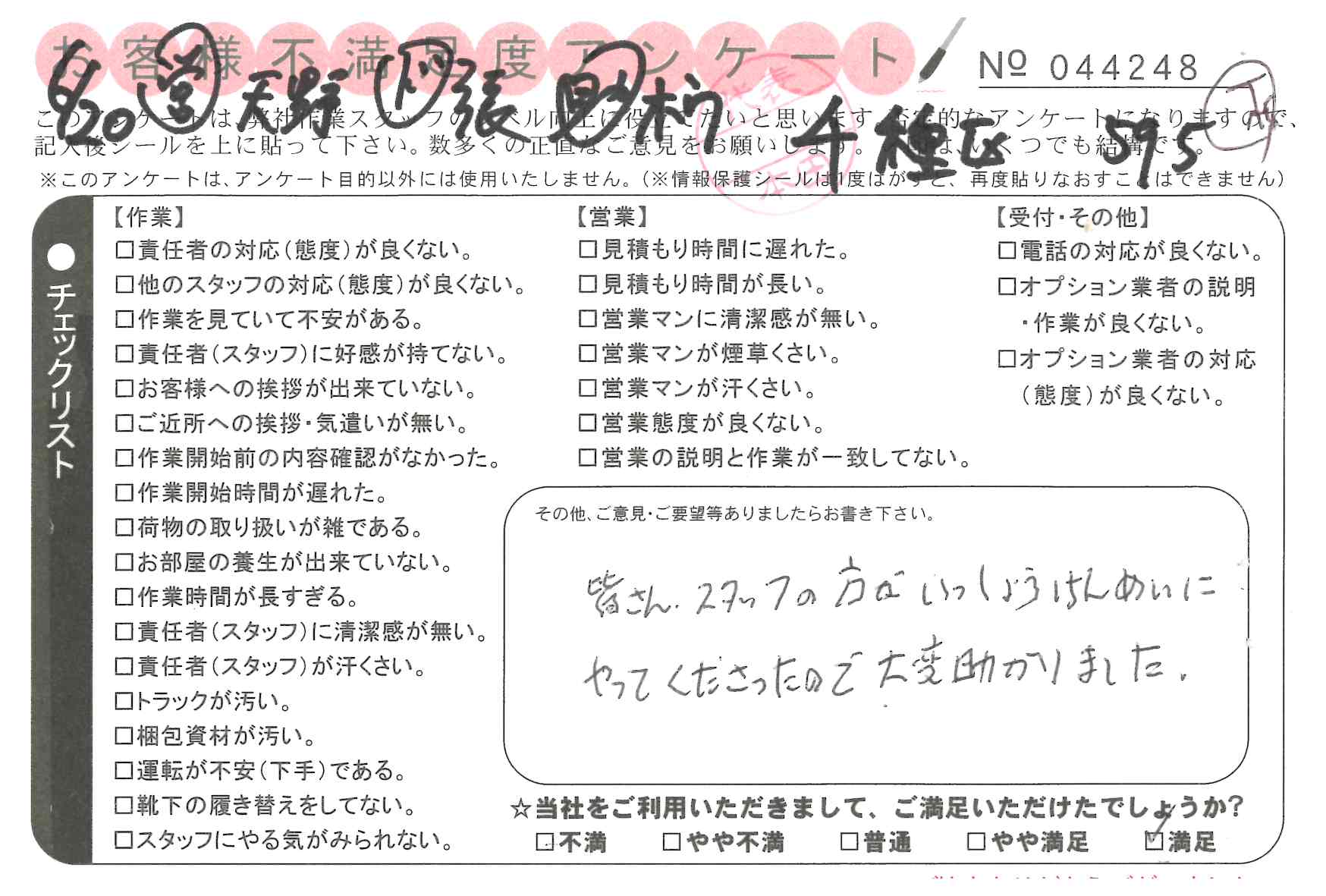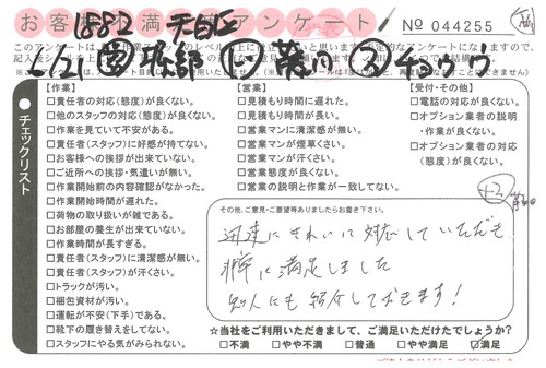 引越一番でお引越しをしていただいたお客様のうち、コメントいただいたアンケートを全て掲載しています。