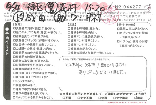6/21 引越 営業:天野 ドライバー:杉浦 スタッフ:オウ・楊* 非常に良かったです。