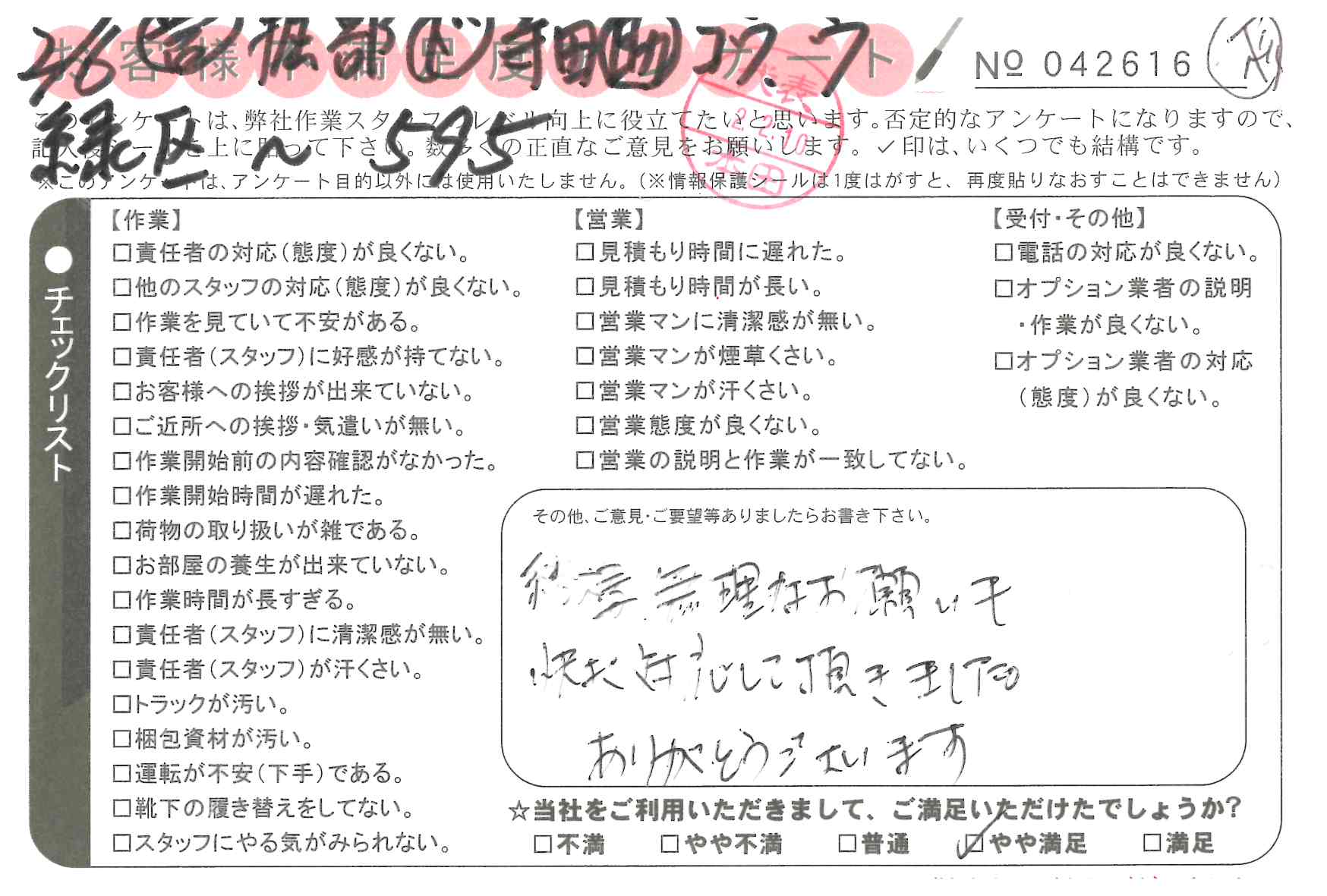 引越一番でお引越しをしていただいたお客様のうち、コメントいただいたアンケートを全て掲載しています。