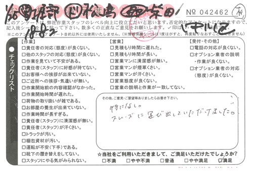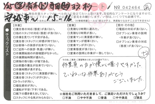 引越一番でお引越しをしていただいたお客様のうち、コメントいただいたアンケートを全て掲載しています。
