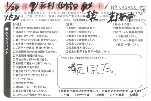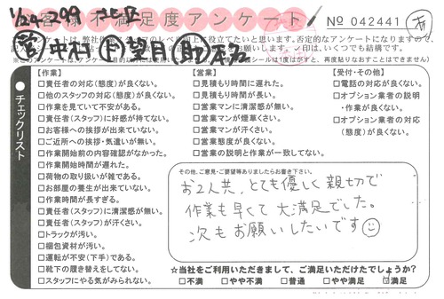 引越一番でお引越しをしていただいたお客様のうち、コメントいただいたアンケートを全て掲載しています。