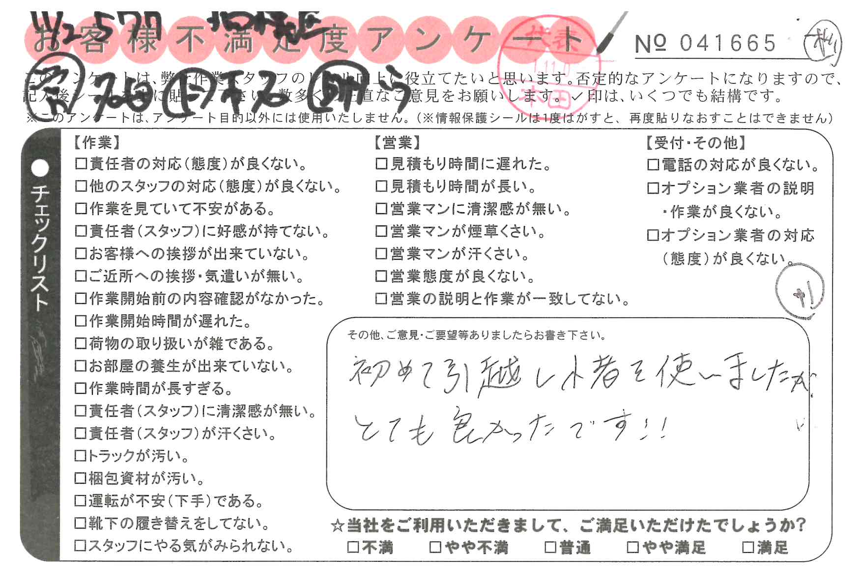 不満足度アンケートを行っている引越一番では、不評なアンケートも、好評なアンケートも全て掲載しています。
