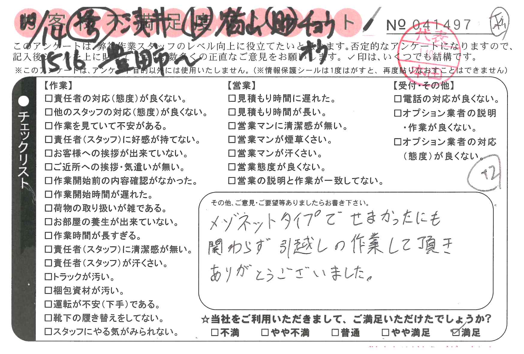 不満足度アンケートを行っている引越一番では、不評なアンケートも、好評なアンケートも全て掲載しています。