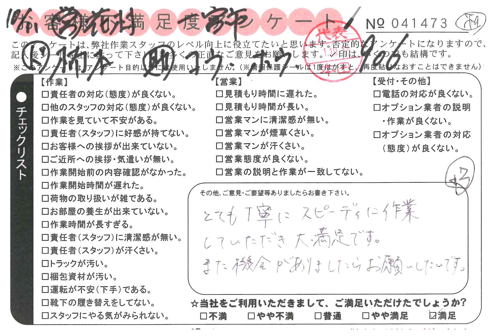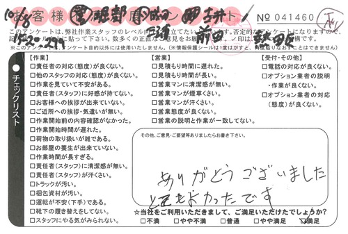 引越一番でお引越しをしていただいたお客様のうち、コメントいただいたアンケートを全て掲載しています。