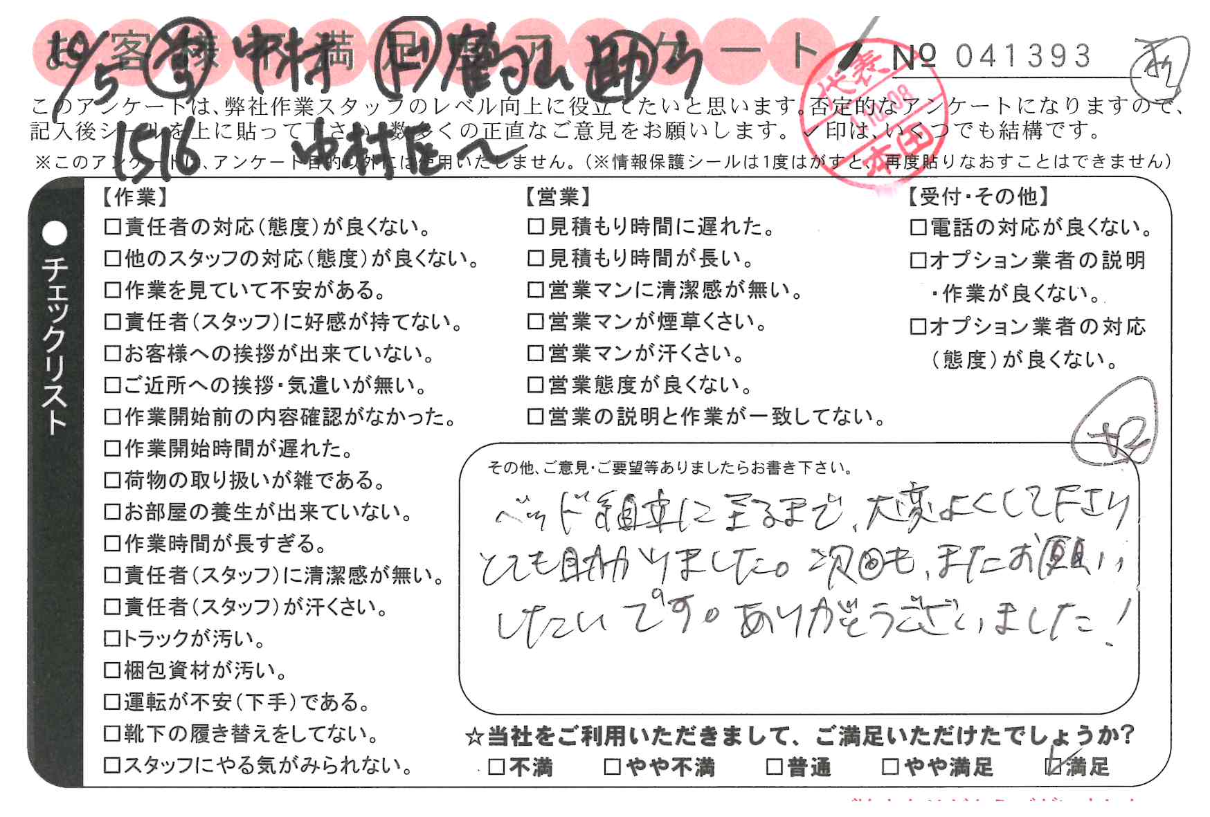 引越一番でお引越しをしていただいたお客様のうち、コメントいただいたアンケートを全て掲載しています。