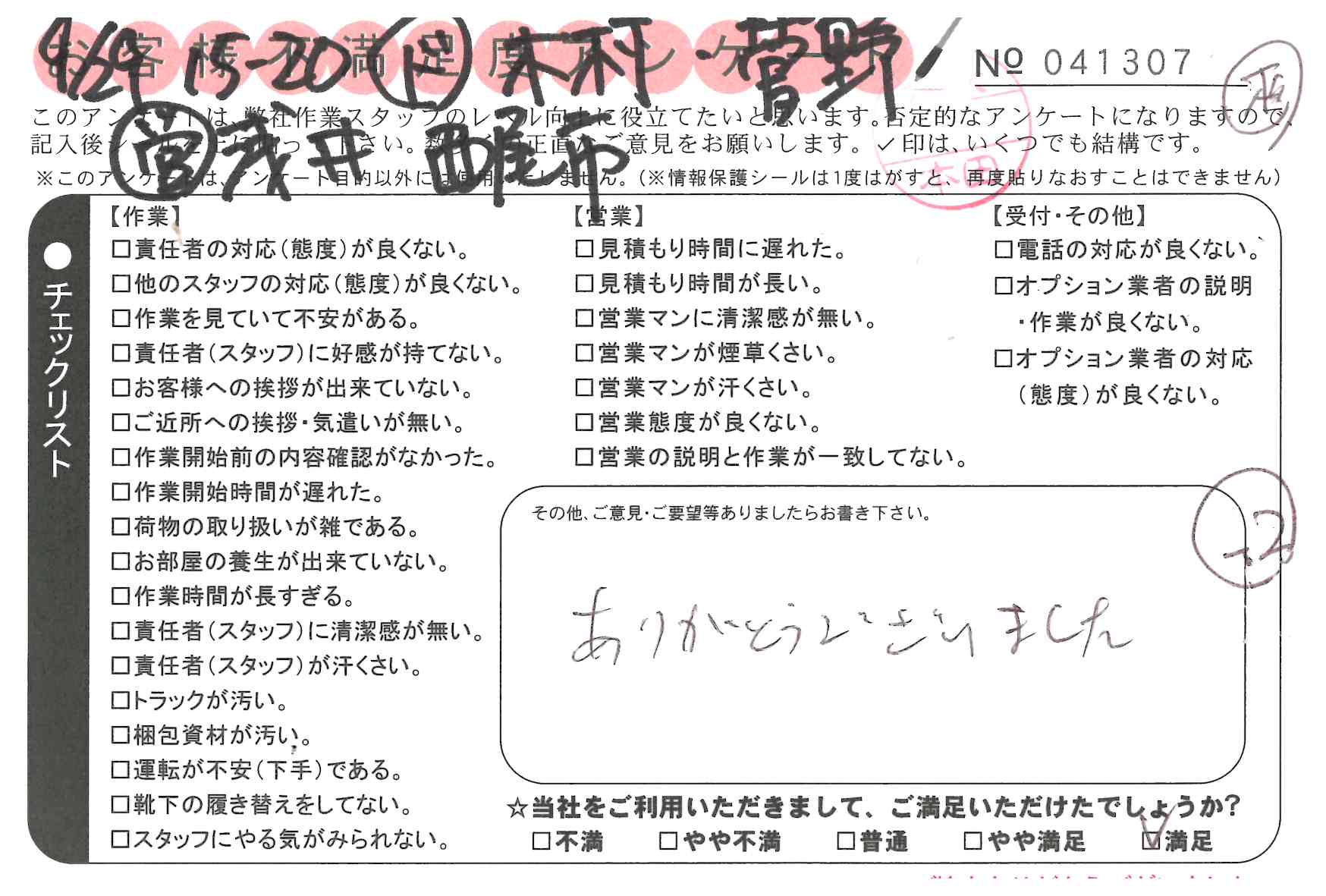 引越一番でお引越しをしていただいたお客様のうち、コメントいただいたアンケートを全て掲載しています。