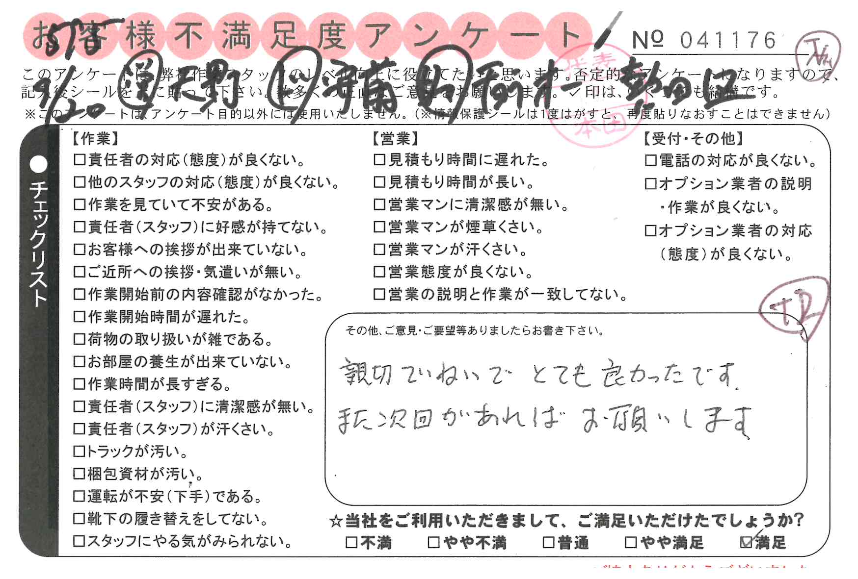 9/21 引越 営業:浅井 ドライバー:成田 スタッフ:石川* 満足できました。