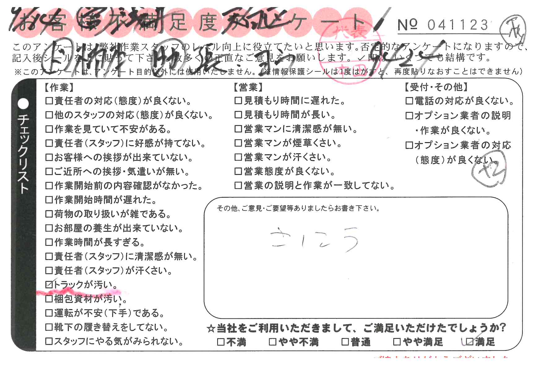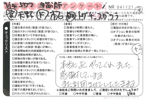 引越一番でお引越しをしていただいたお客様のうち、コメントいただいたアンケートを全て掲載しています。