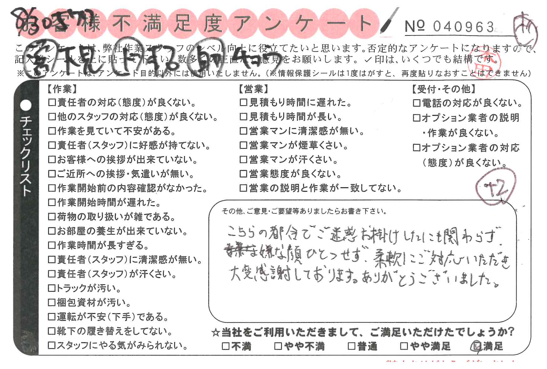 不満足度アンケートを行っている引越一番では、不評なアンケートも、好評なアンケートも全て掲載しています。