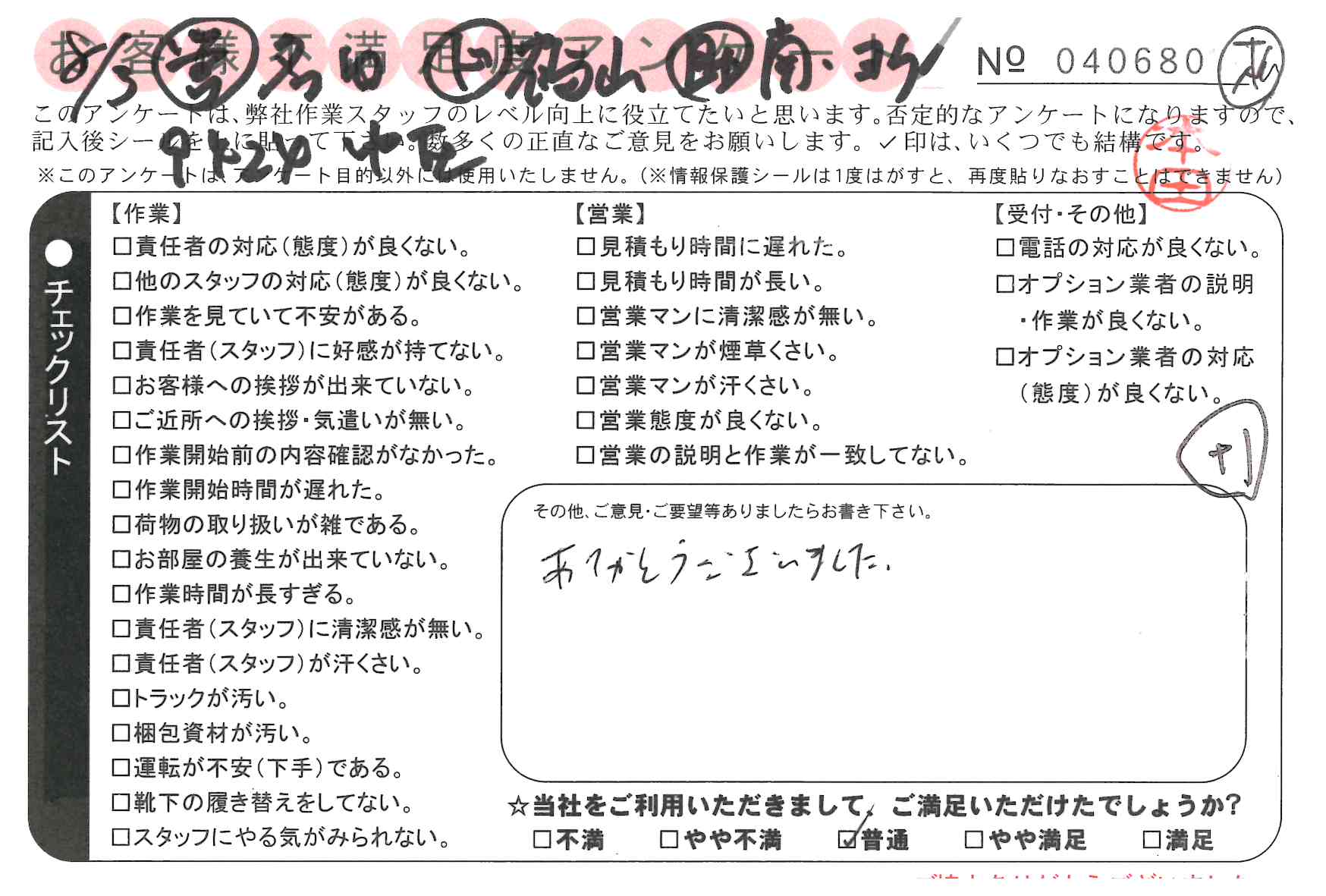 引越一番でお引越しをしていただいたお客様のうち、コメントいただいたアンケートを全て掲載しています。