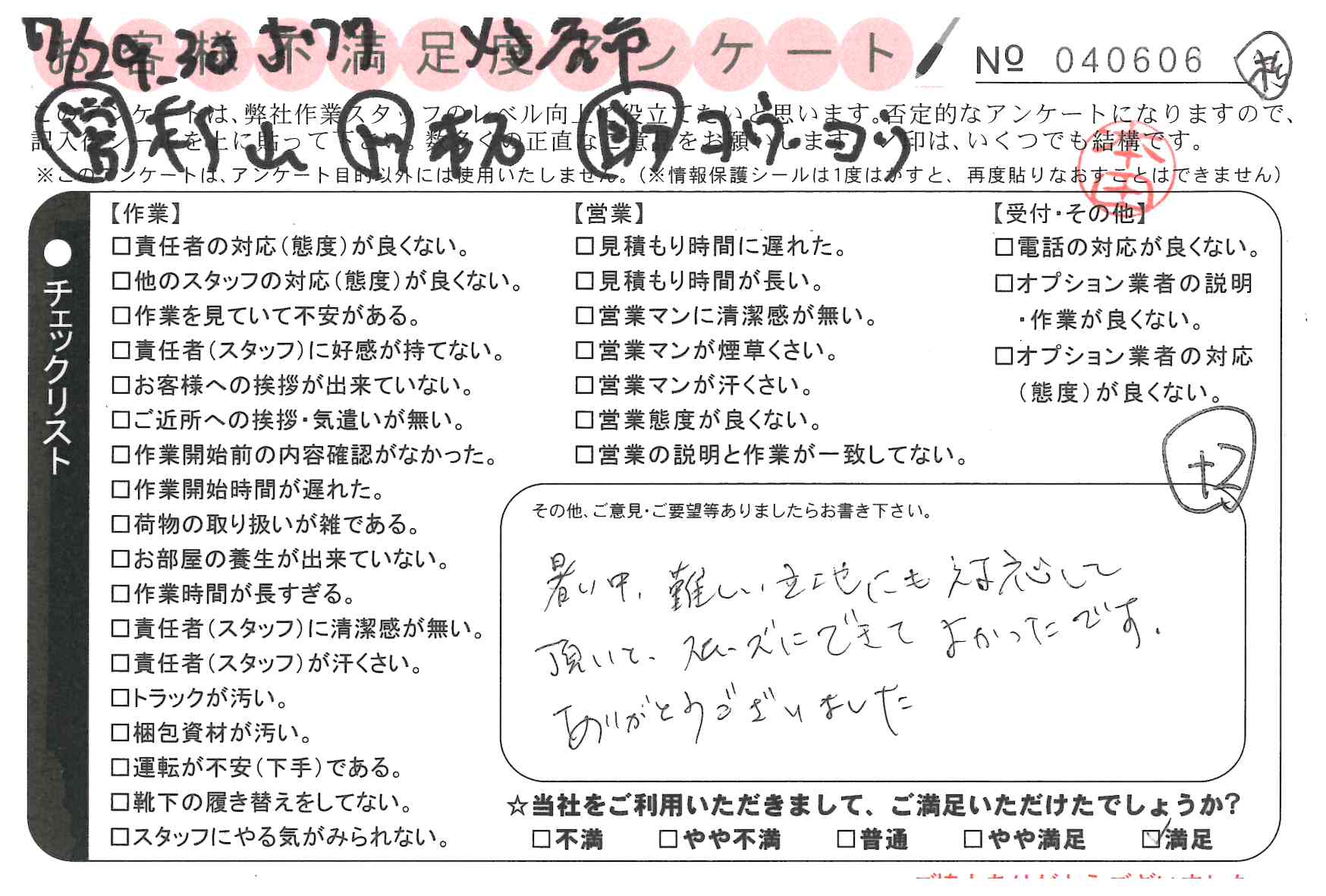 引越一番でお引越しをしていただいたお客様のうち、コメントいただいたアンケートを全て掲載しています。