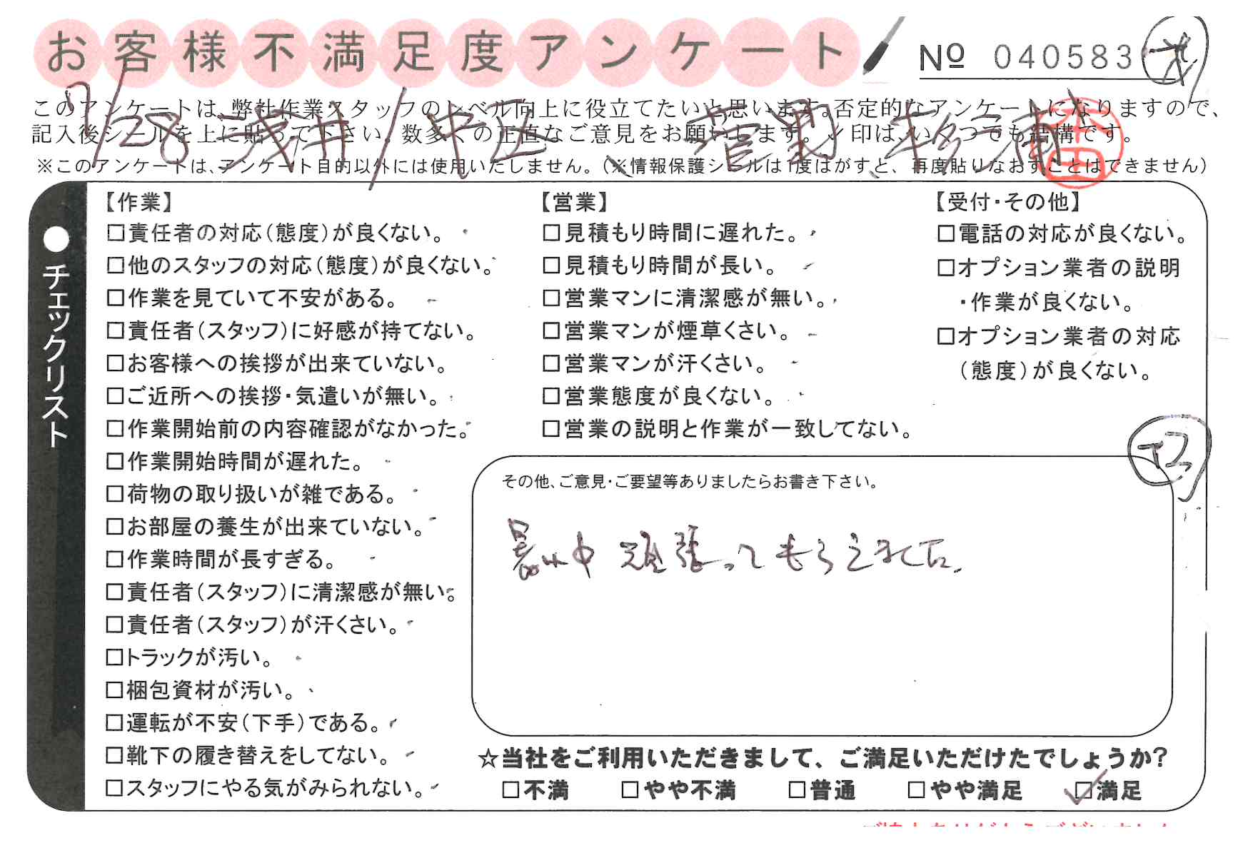 引越一番でお引越しをしていただいたお客様のうち、コメントいただいたアンケートを全て掲載しています。