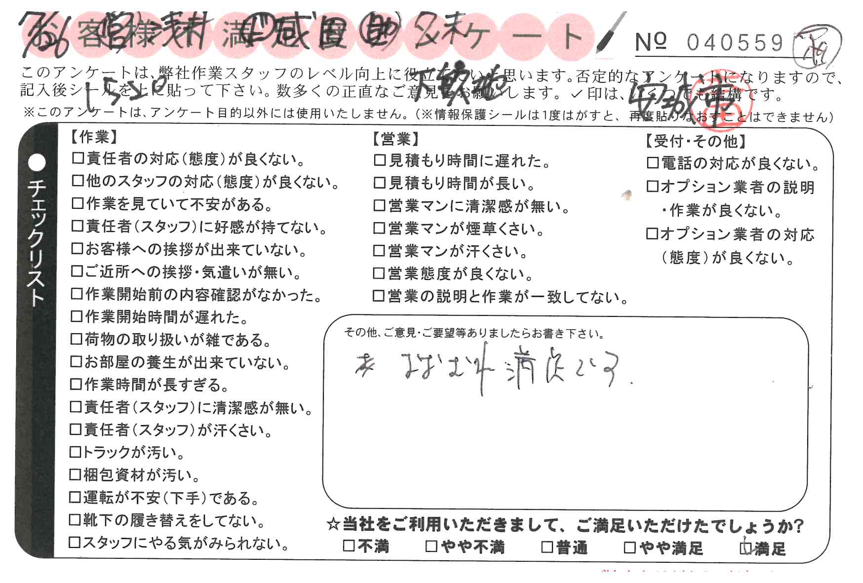 不満足度アンケートを行っている引越一番では、不評なアンケートも、好評なアンケートも全て掲載しています。