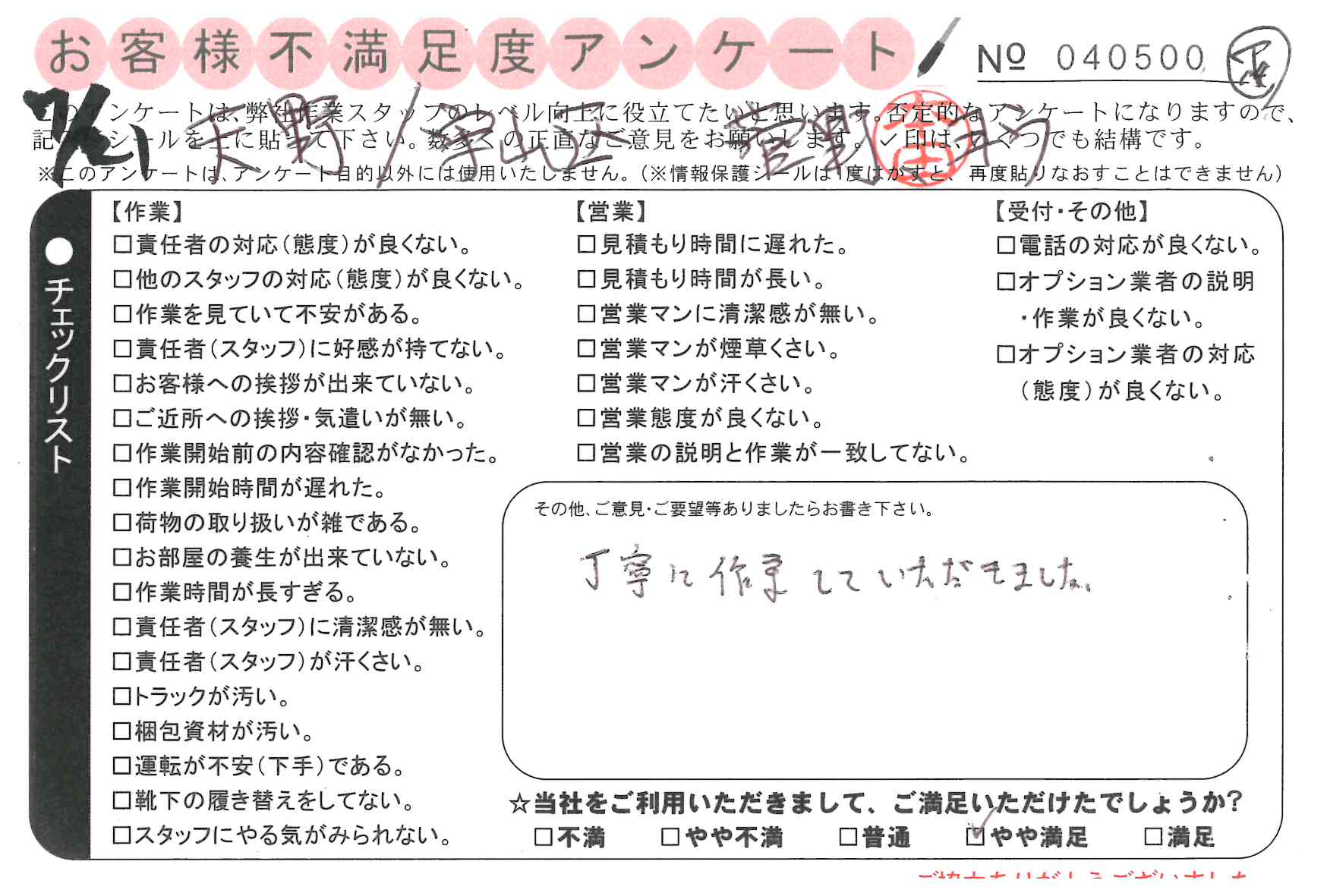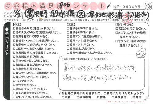 引越一番でお引越しをしていただいたお客様のうち、コメントいただいたアンケートを全て掲載しています。