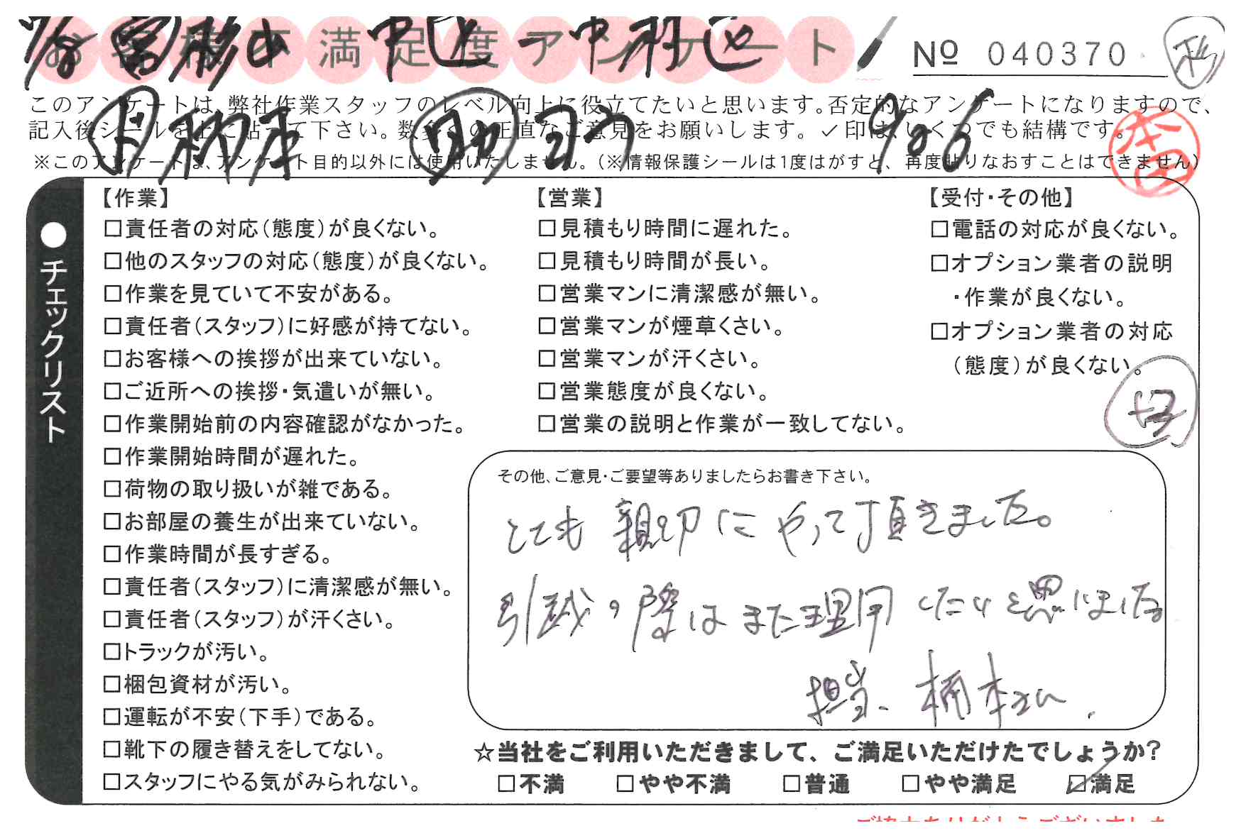 引越一番でお引越しをしていただいたお客様のうち、コメントいただいたアンケートを全て掲載しています。