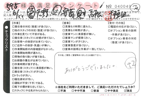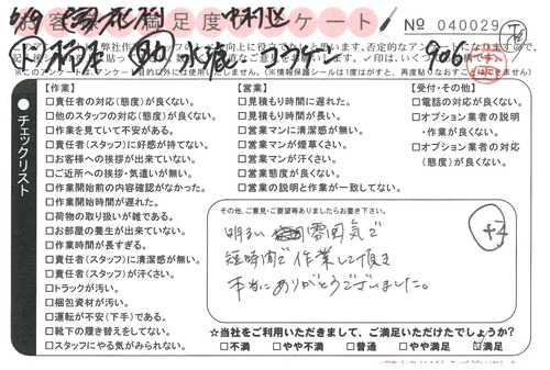 引越一番でお引越しをしていただいたお客様のうち、コメントいただいたアンケートを全て掲載しています。
