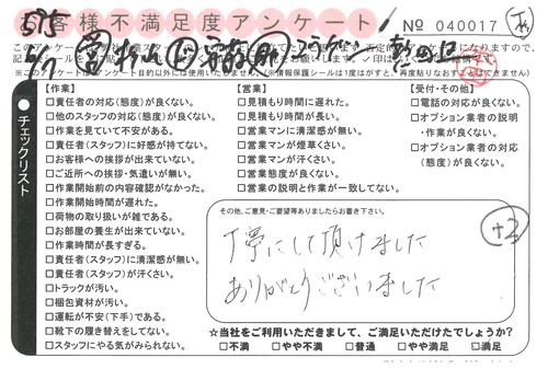 引越一番でお引越しをしていただいたお客様のうち、コメントいただいたアンケートを全て掲載しています。