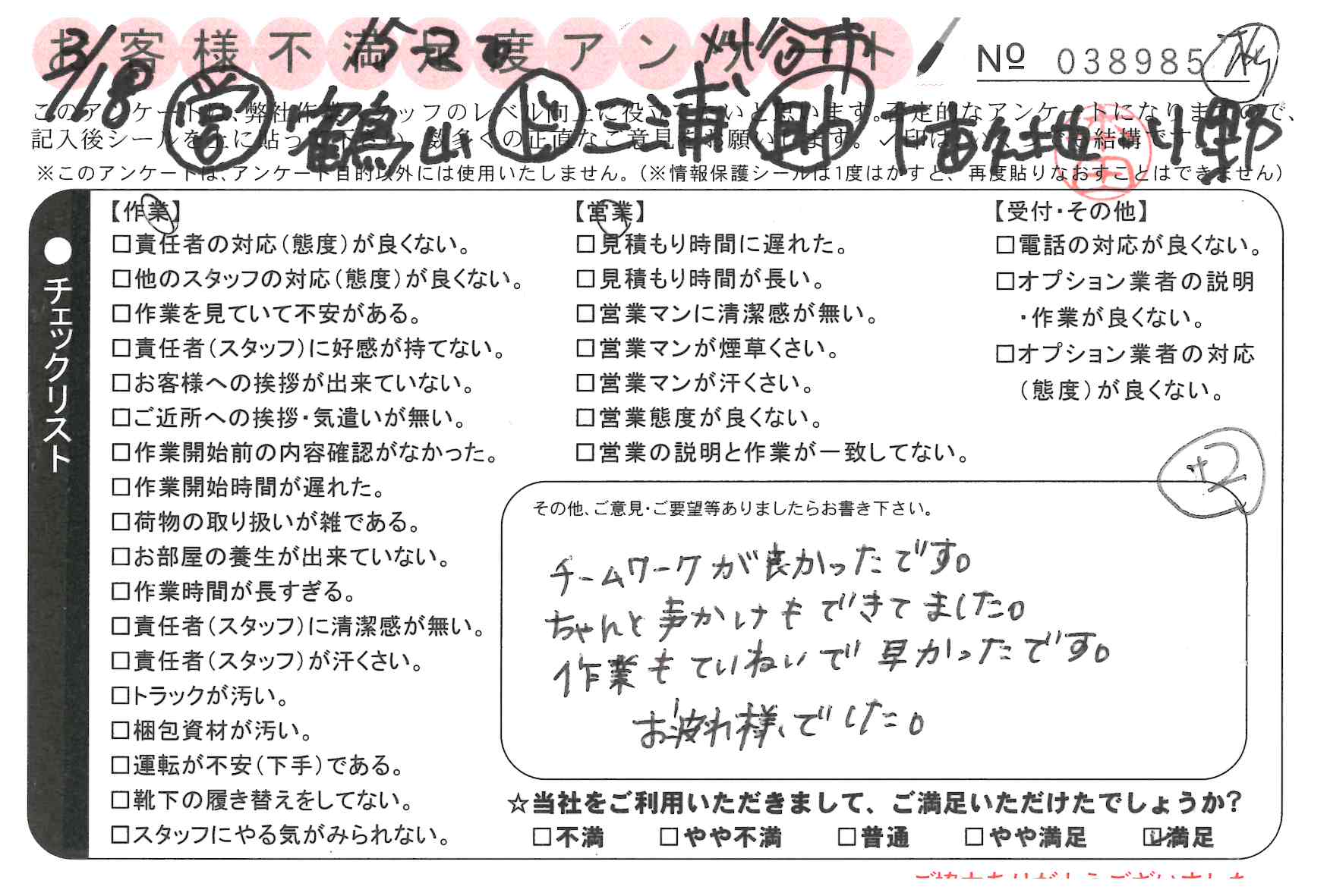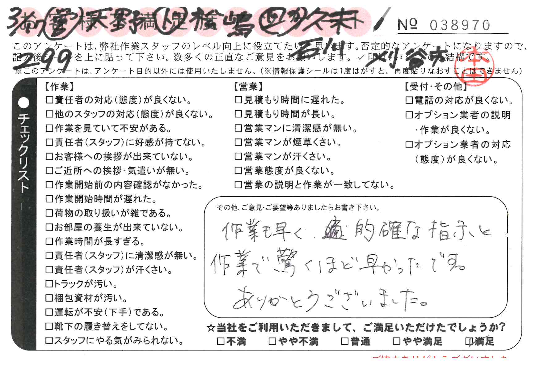 引越一番でお引越しをしていただいたお客様のうち、コメントいただいたアンケートを全て掲載しています。