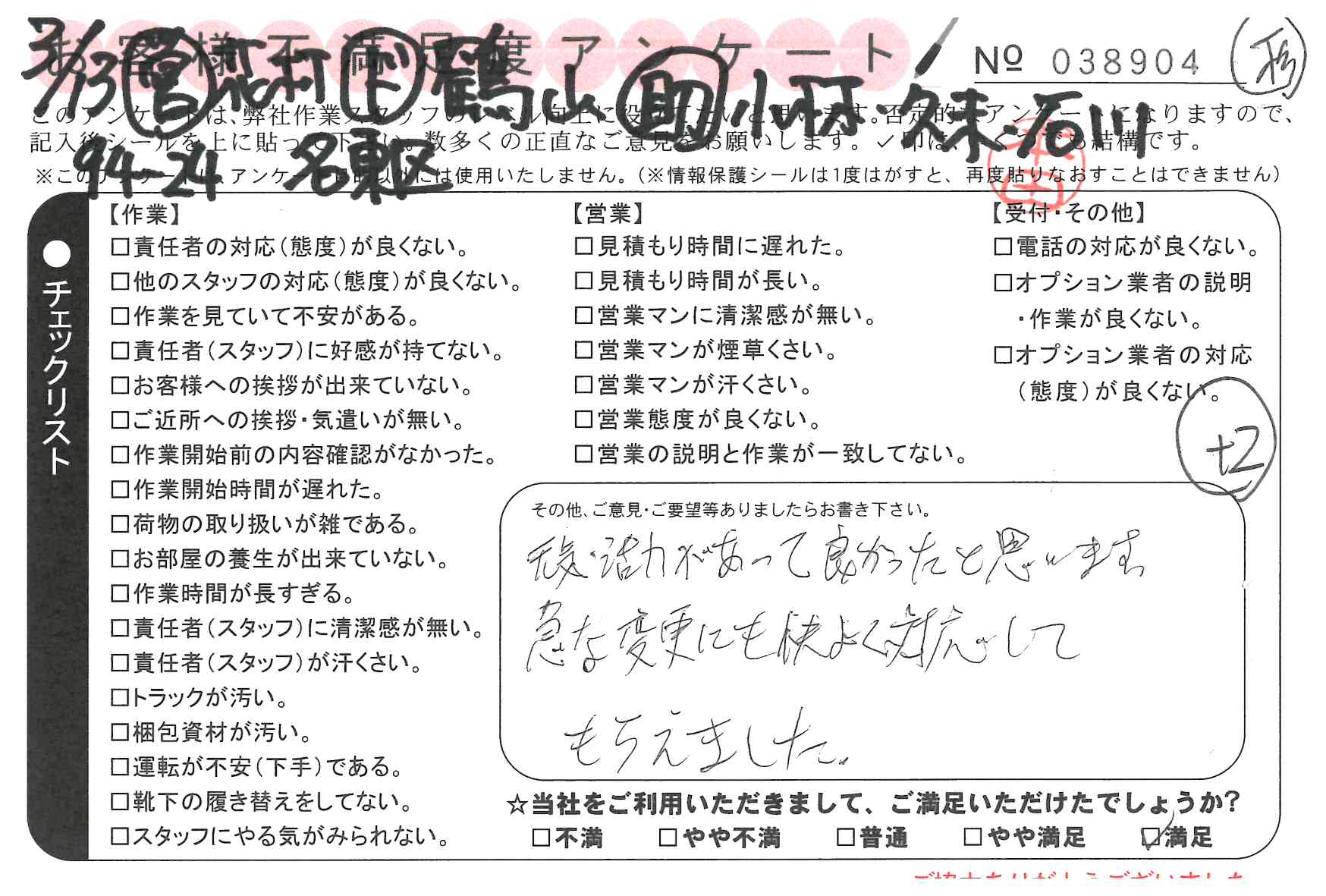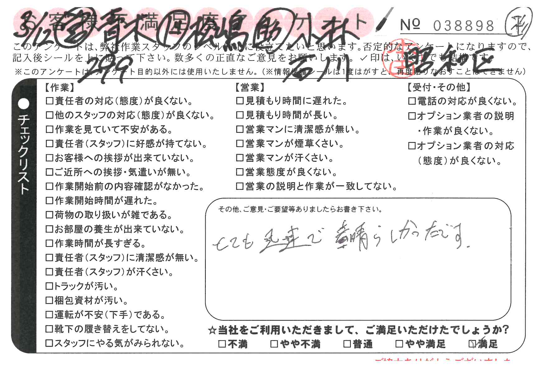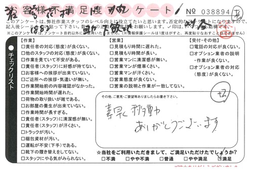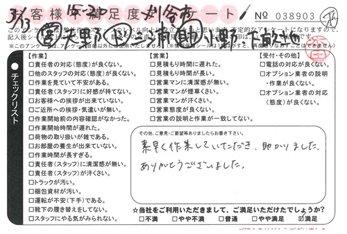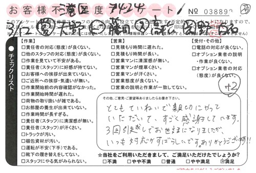 引越一番でお引越しをしていただいたお客様のうち、コメントいただいたアンケートを全て掲載しています。