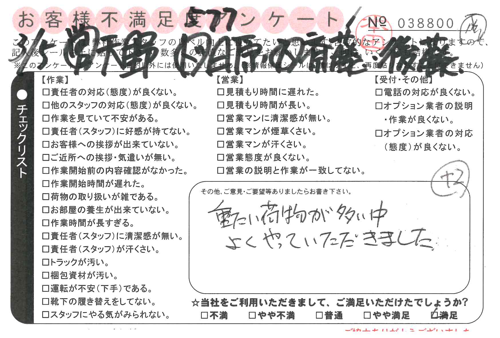 3/3 引越 営業:天野 ドライバー:藤田 スタッフ:高* 十分やっていただきました。
