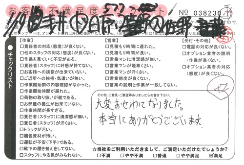 すばらしかったです。【名古屋市中川区からのお引っ越し】