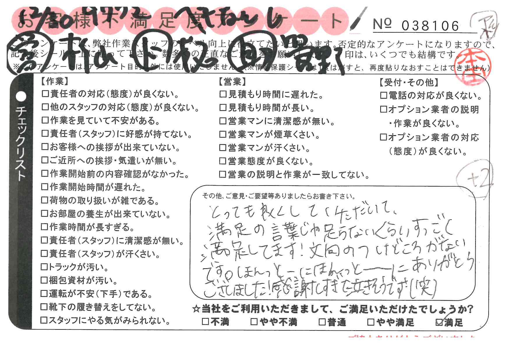 引越一番でお引越しをしていただいたお客様のうち、コメントいただいたアンケートを全て掲載しています。
