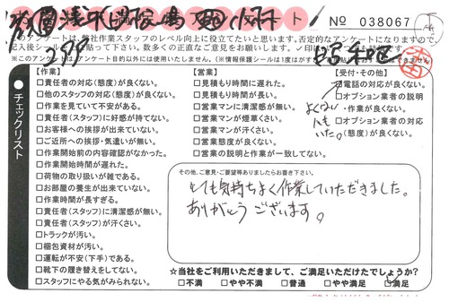 引越一番でお引越しをしていただいたお客様のうち、コメントいただいたアンケートを全て掲載しています。