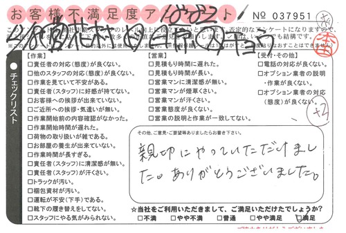 引越一番でお引越しをしていただいたお客様のうち、コメントいただいたアンケートを全て掲載しています。